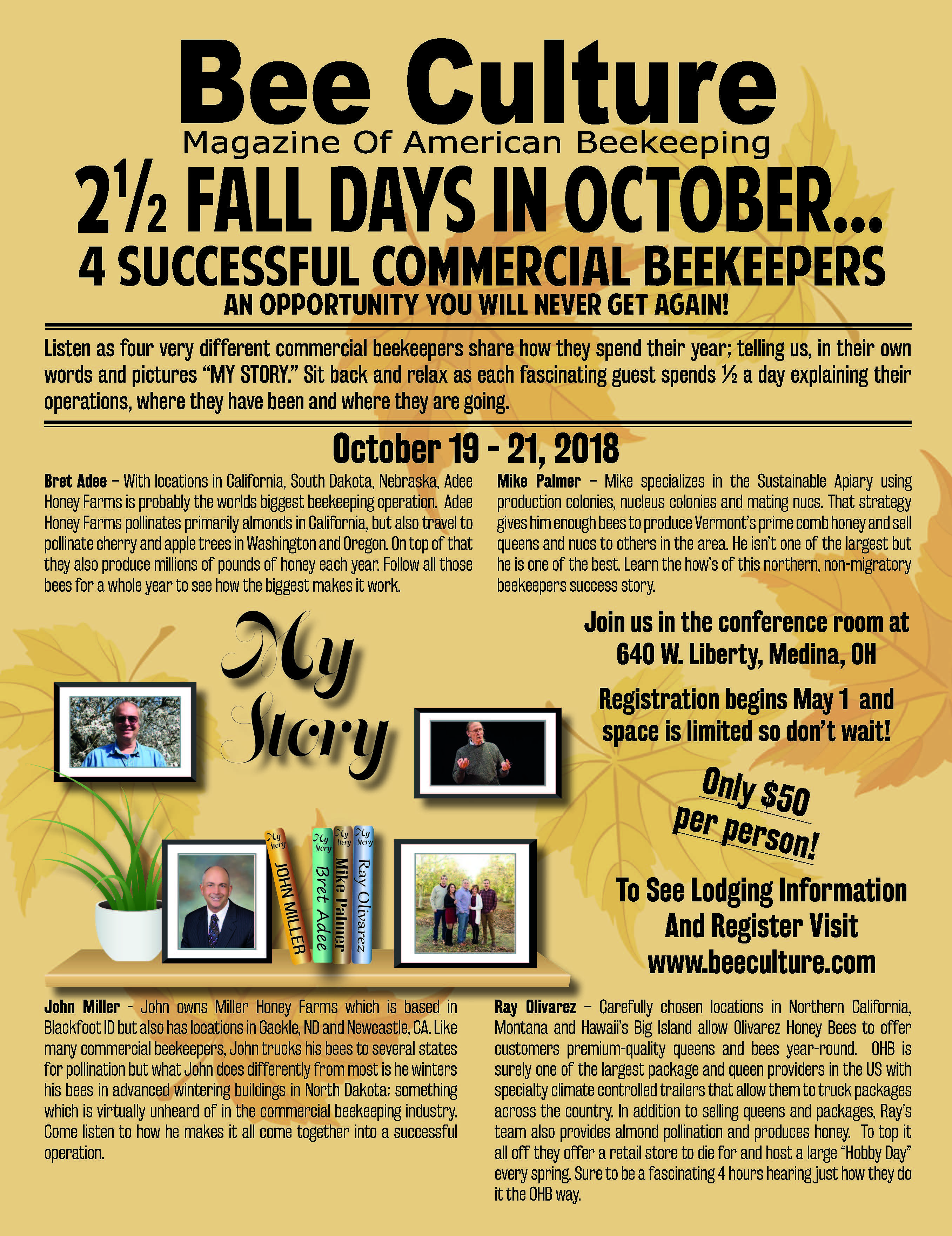 Don’t Delay – Register Today – Space is VERY LIMITED!!!! http://store.beeculture.com/events/